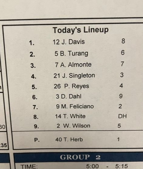 NAS: Jonathan Davis lead off bomb, Brice Turang with a pair of singles, Wes Wilson with a double & single, Andy Otero with 4.1 scoreless relief IP.
