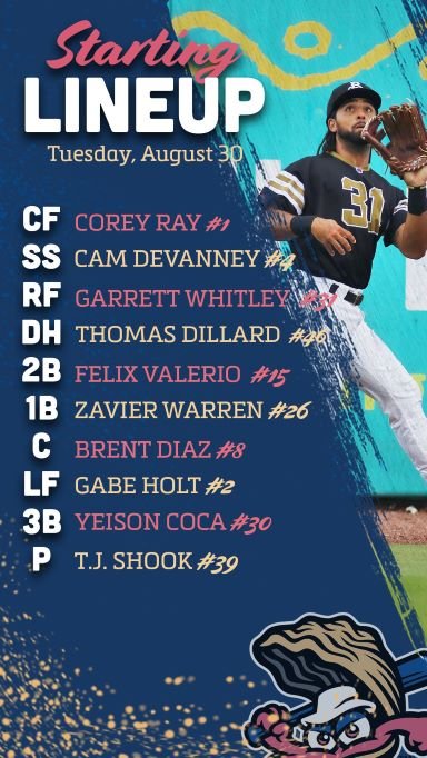 The Shuckers are in Madison, Alabama (part of Huntsville metropolitan area) this week to take on Angels' AA affiliate Rocket City. RHP TJ Shook (4.07 ERA in High-A/AA) gets the start tonight. DH/1B Thomas Dillard comes in with a 13-game on-base streak: