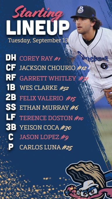 Biloxi has a 4-game winning streak and welcomes newly-promoted CF Jackson Chourio (.916 OPS in 413 Low-A/High-A plate appearances) for its final week of the season, a road series against Marlins' AA affiliate Pensacola. RHP Carlos Luna starts the opening game, seeking to overcome a rough 3-game stretch personally (13 ER in 8 2/3 IP):