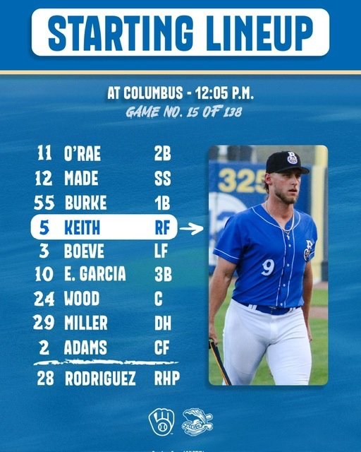 23-year old RHP Yorman Galindez (4 IP, 1 R, 5 Ks in 2 games) makes his 2nd start as High-A Wisconsin seeks to finish off a 4-1 home series win over Peoria. LF Josh Adamczewski is hitting .333 with 5 homers in 9 games played.