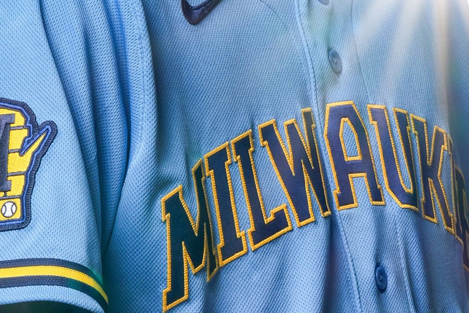 To my knowledge, the Brewers have never used "Milwaukee" on a powder blue jersey, making these likely to be road uniforms. The block font is a throwback, but only to jerseys that read "Brewers" in the 1970s and 1980s. Milwaukee was typically written in a script font, not dissimilar to the current dark blue jerseys worn on the road.
