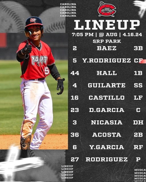 The Low-A Mudcats get us started today, aiming to finish off a 5-1 home series win over Down East. RHP Yorman Galindez ( 2 ER with 4 Ks in 2.2 IP last week) gets the start, while we wonder whether RHP Ryan Birchard will throw long relief. CF Yophery Rodriguez has an .875 OPS in 32 PAs, though he’s K’d 13 times. This is UT Kay-Lan Nicasia’s first start at first base since he joined the Brewers in 2021.